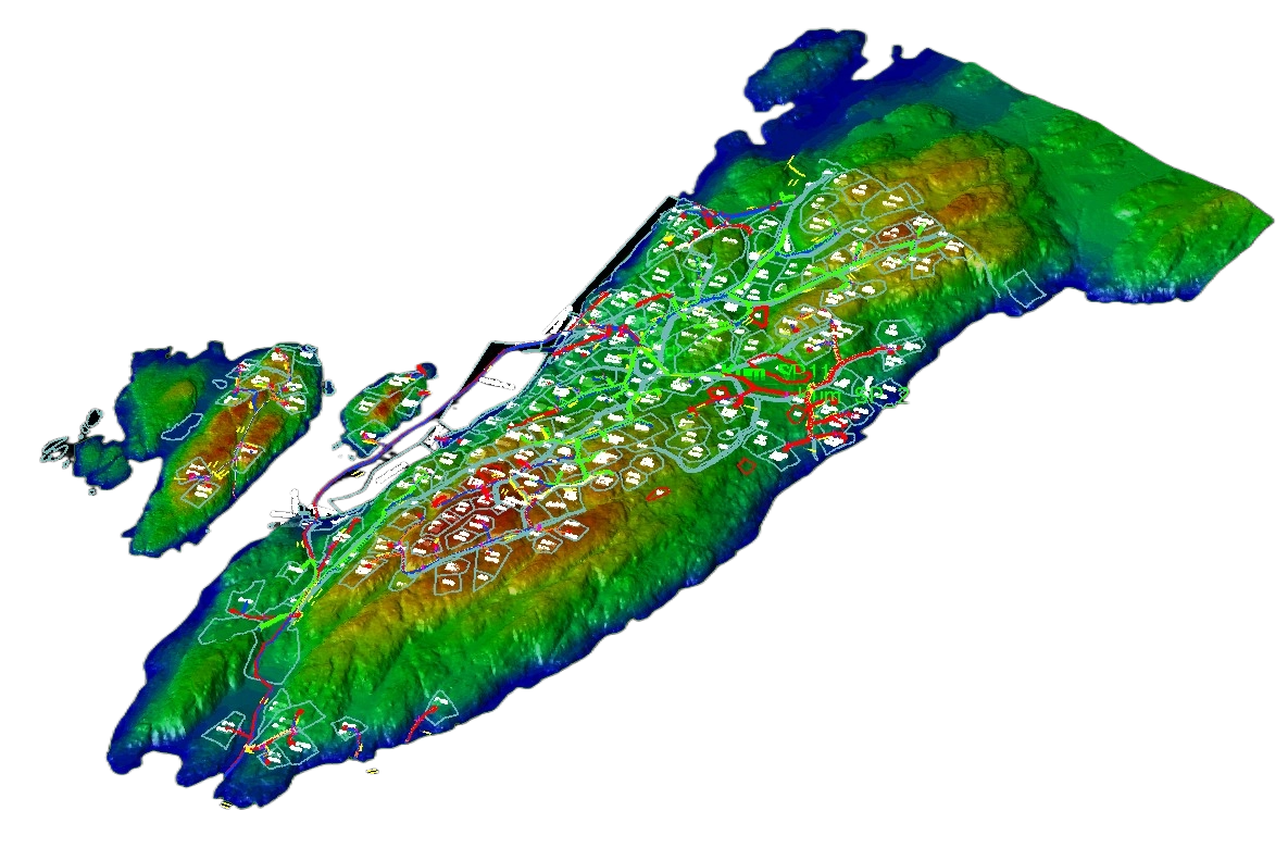 Ved å bruke en terrengmodell generert fra Lidar-data samlet inn med drone, har vi integrert reguleringsplanen direkte i en detaljert 3D-modell som tilpasses eksisterende terrengforhold. Denne nøyaktige datarepresentasjonen gjør det mulig å visualisere prosjektet i nåtid, samtidig som vi kan simulere historiske forhold. En sammenligning mellom f.eks. vannstanden for 6000 år siden til i dag vil gi en kvalitetssikker forståelse av mulige konflikter med landskapsutvikling, arkeologiske funn, klimautvikling og mer. Dette vil gi mulighet for nødvendige justeringer tidlig i prosjektfasen som kan gi store kostnadsbesparelser for kunden i senere tid.